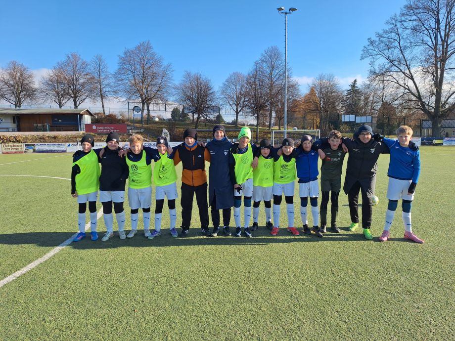 Im Achtelfinale des Sparkassen-Kreispokals empfing unsere D-Jugend am Buß- und Bettag die zweite Mannschaft des VfL Pirna-Copitz – ein Team, das seine Poolrunde zuvor verlustpunktfrei bestritten hatte und entsprechend selbstbewusst anreiste. Unsere Jungs zeigten jedoch von Beginn an, dass sie an diesem Tag eine kleine Pokalsensation im Sinn hatten. Wie sagt man so schön: „Der Pokal hat seine eigenen Regeln.“
