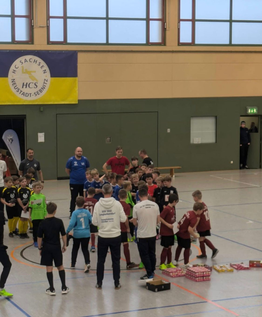 Im Sportforum Neustadt waren über den gesamten Samstag und Sonntag verteilt rund 200 Kinder im Einsatz. Wir haben als SSV 1862 Langburkersdorf erstmals ein offizielles Hallenturnier des Kreisverbands Fußball Sächsische Schweiz-Osterzgebirge (KVFSOE) ausrichten dürfen – und das mit großem Erfolg!